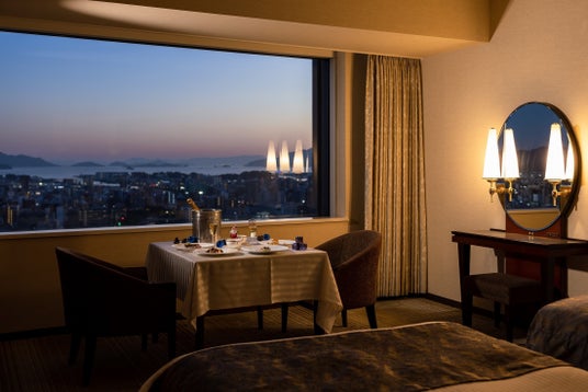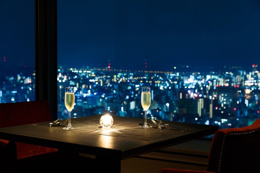 ホテル最上階に位置し、広島市街の煌めく夜景が満喫できるレストランでロマンティックなディナーを。