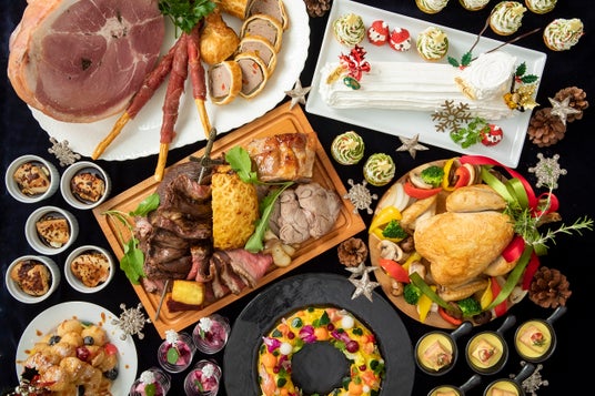 「ダイニング ルオーレ」では、国産牛などの塊肉を豪快&ジューシーに焼き上げた “シュラスコ”のほか、ローストチキンやブッシュ ド ノエルなどクリスマス限定メニューを揃えたプレミアムビュッフェを楽しめます。