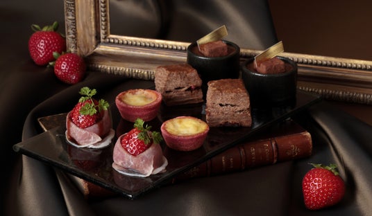 例年好評を博す冬のいちごアフタヌーンティー。第1弾は、いちご×チョコレートの王道コラボレーションでお贈りする、ロマンティックなルージュカラーのスイーツ全8種が登場します。いちご尽くしのアフタヌーンティーにふさわしい季節の紅茶「いちごティー」「森いちごのルイボスティー(ノンカフェイン)」もご用意。