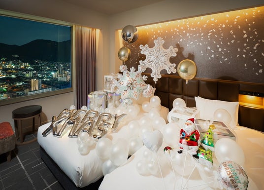 その他にも、“ジュニアスイート”のベッドルームにバルーンデコレーションを飾るほか、クリスマス仕様のフォトプロップス、ホテルメイドのクリスマスケーキをルームサービスするプランもご用意。華やかな雰囲気の中で写真撮影を愉しみながら思い出に残るホテルステイをお届けいたします。