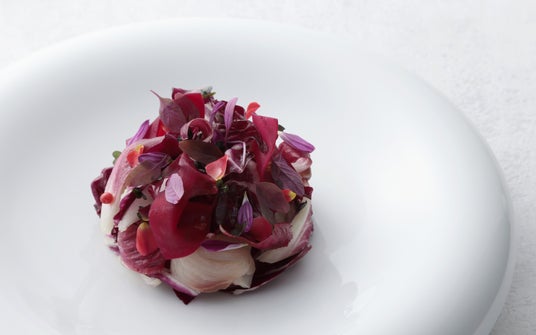 「オリーブハマチのマリネ 赤いサラダとフランボワーズヴィネグレット」