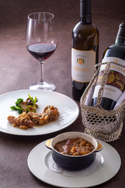 本イベントでは、アントワン・ヴェイリー氏とフレンチダイニング トップ オブ キョウト マネジャー兼ソムリエの吉永 忍による選りすぐりのワイン6本を提供します。「シャトーブースカッセ VV マグナム 1999」や「ブースカッセ メニール 2006」など、フランス国内外で高評価を得ている力強さとエレガンスさを兼ね備えた、深みのある味わいのワインを取り揃えました。