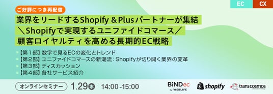 【トランスコスモスオンラインセミナー】【ご好評につき再配信】業界をリードするShopify & Plusパートナーが集結\Shopifyで実現するユニファイドコマース/を1/29(水)に開催