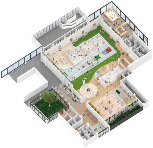 乃村工藝社は、施設コンセプト策定から設計、内装・遊具・装飾の施工、運営まで総合的に担当しています。地域活性化と施設事業のノウハウを活かし、本施設を運営してまいります。また本施設では、DBO*事業の自主事業として、乃村工藝社が民間投資を実施し、遊具、造作家具什器、サイン・グラフィックなどの追加整備により、施設の魅力向上を実現しております。