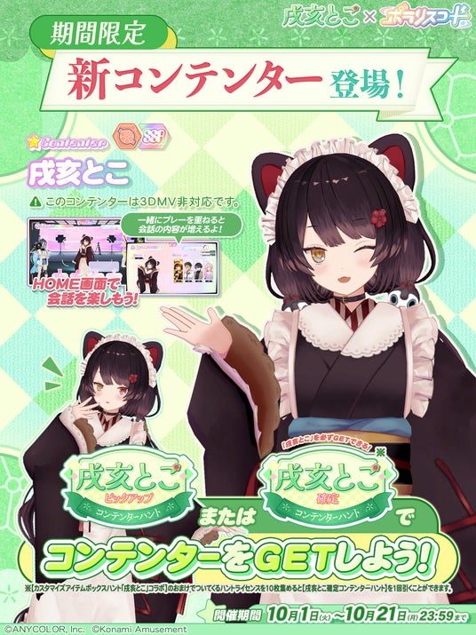 「コンテンター」と「コンテンター」をサポートする「サポートスナップ」に『戌亥とこ』が登場します。
