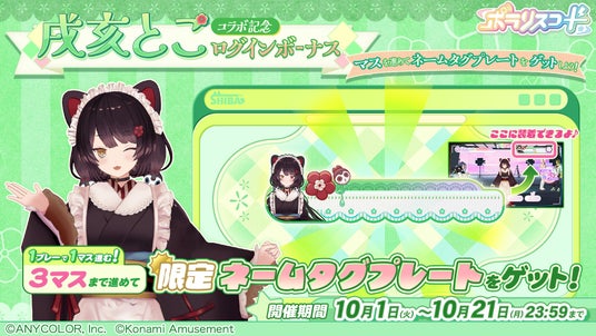 株式会社コナミアミューズメントは、全国のアミューズメント施設にて音楽ゲーム『ポラリスコード』と、ANYCOLOR株式会社が運営するVTuber/バーチャルライバーグループ「にじさんじ」所属の『戌亥とこ(いぬいとこ)』とのコラボレーションイベントを10月1日(火)から開催することをお知らせします。