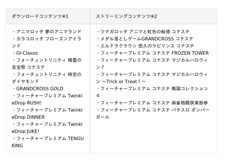 『コナステ メダルコーナー』アプリで遊べるタイトルリスト