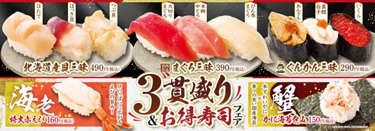 レストランチェーンを展開する株式会社Genki Global Dining Concepts(本社:東京都台東区 代表取締役社長執行役員 東 光法)は、2025年1月14日(火)より『3貫盛り&お得寿司フェア』を開催いたします。
