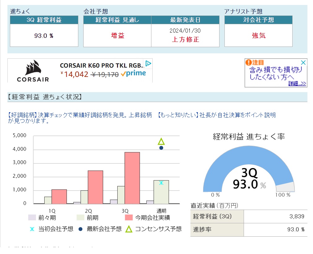 業績(会社計画の修正発表を含む)