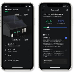 テスラアプリにより、ご家庭の消費電力の状況や、太陽光発電システムの発電量、Powerwallの蓄電量等をリアルタイムで確認することができ、運転モード等の設定もアプリから遠隔で行うことができます。