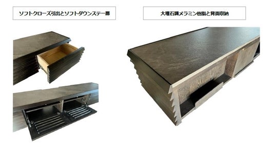 ・重量のある大型テレビに対応するため、ボード天面には表面硬度に優れた大理石調メラミン樹脂板を