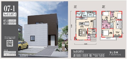 この度追加となる新プラン「EG シリーズ」は、シンプルですっきりとした外観テイストが特徴の 13 種類のデザインをベースに、全 48 プランで構成しています。全プランとも外壁にガルバリウム鋼 板を採り入れ、玄関に面した壁面を異なる材質で貼り分けているほか、屋根は「破風なし納まり」な どこれまでのプランにはなかった外観もラインアップしました。
