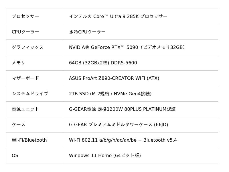 【TSUKUMO】G-GEAR、ASUS ProArt Z890-CREATOR WIFIを搭載したゲーミングPCの新モデルを発売