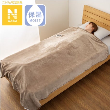 「Nウォーム電気毛布」とは、毛布の中に入った電熱線に電気が通ることであたたまる電気毛布に、吸湿発熱のNウォーム素材を使用したアイテム。スイッチを入れなくてもぽかぽかあたたたかく、寝る前にスイッチを入れて布団をあたためておけば、さらにあたたかいので、寒がり方にもおすすめです。