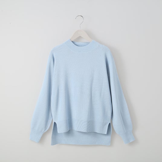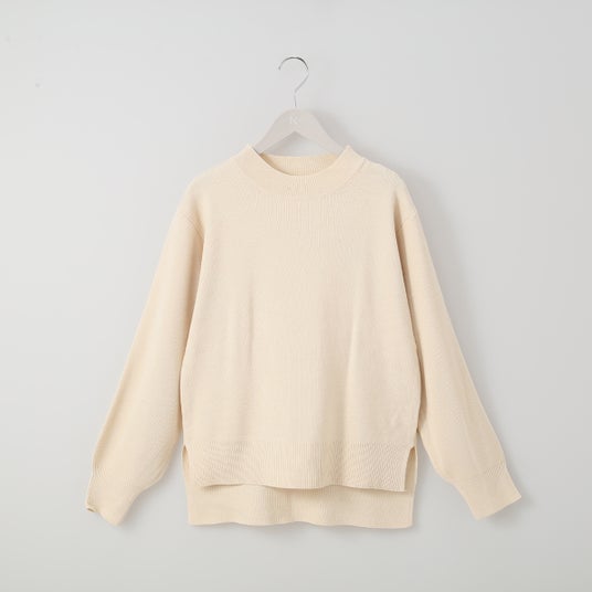 毛玉ができにくい加工をしたニットプルオーバーで、綺麗が長続きします。シンプルな編地となめらかな表面感は高見えポイント。さり気ない丈の前後差と程良いゆとりで、デイリーに着回しができるアイテムです。