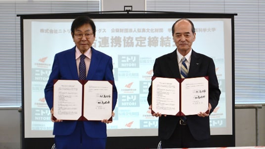 このたび、株式会社ニトリホールディングス、公益財団法人似鳥文化財団、学校法人北海道科学大学は、人々の暮らしをより豊かにすることを目指し、地域経済や観光の活性化、社会で活躍できる人材の育成に寄与する取り組みを連携して推進するため、包括連携協定を締結いたしました。