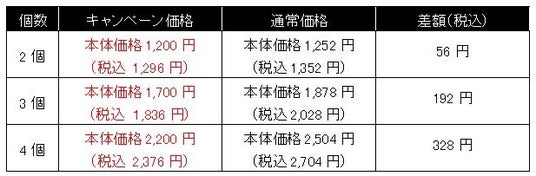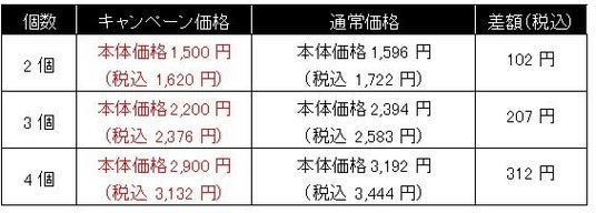 【キャンペーン期間中の価格一覧】