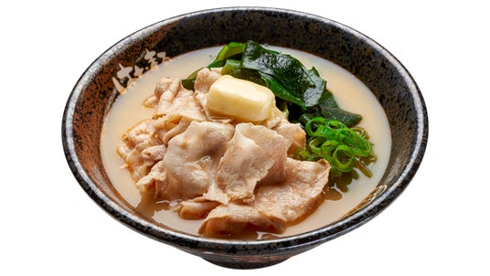 「豚肉味噌バター」は、味噌バターと相性抜群の豚バラ肉をトッピングし、わかめとバターを加えてこってりまろやかに仕上げました。ボリュームたっぷりの豚肉でお腹もしっかりと満たされ、身体の芯から温まります。