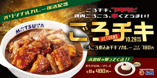 こだわりのスパイシーなカレーが、豊富なラインナップで続々登場 オリジナルカレーの中でも人気の根強い“ごろチキ”が復活 10月29日(火)午前10時~ 販売開始