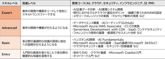- 4つのスキルレベル:Entry、Basic、Advanced、Expert