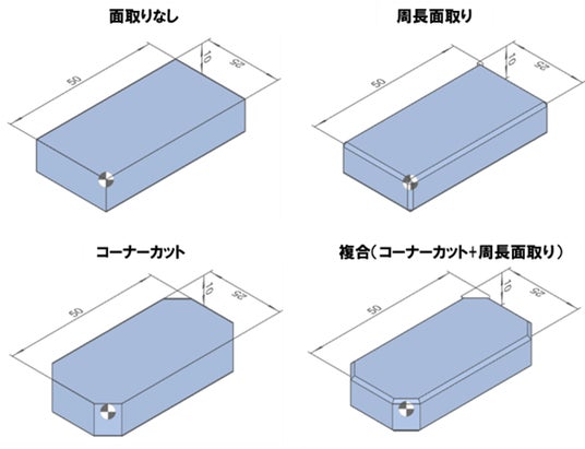 提供開始にあたり、材料プレート調達の方法を見直すことで、コストの削減と最短翌日(一日目)出荷 を実現しています。また、コーナーカットや周長面取りなどの加工にも対応しています。