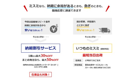 納期割引サービス サービスサイト: https://jp.misumi-ec.com/pr/noukiwari/