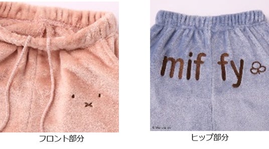 ■特長:裾ゴム入りで着心地の良いパンツ。ヒップ部分に大きく「miffy」の刺繡が入った、かわいらしいバックスタイルです。フロントにはトップスと同じくミッフィーの目と口の刺繡が入っています。ウエストゴムで快適にお過ごしいただけます。
